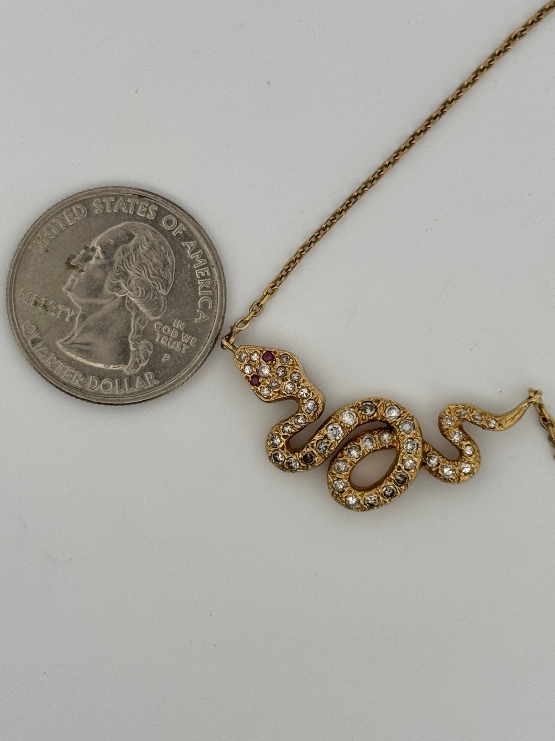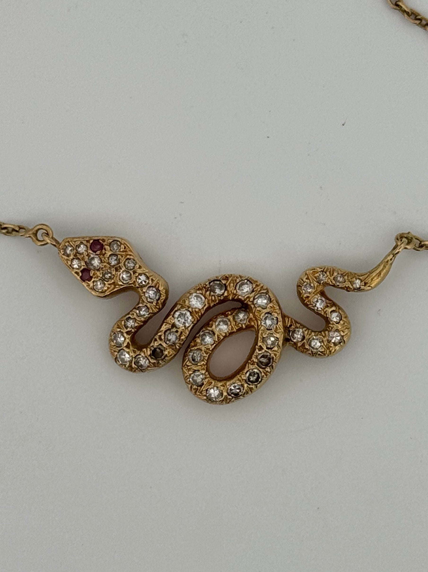This is a very unique piece and has hallmarks on the clasp as well as the snake pendant itself. All hallmarks are in great shape and readable which adds a uniqueness to this piece. Overall condition is great!