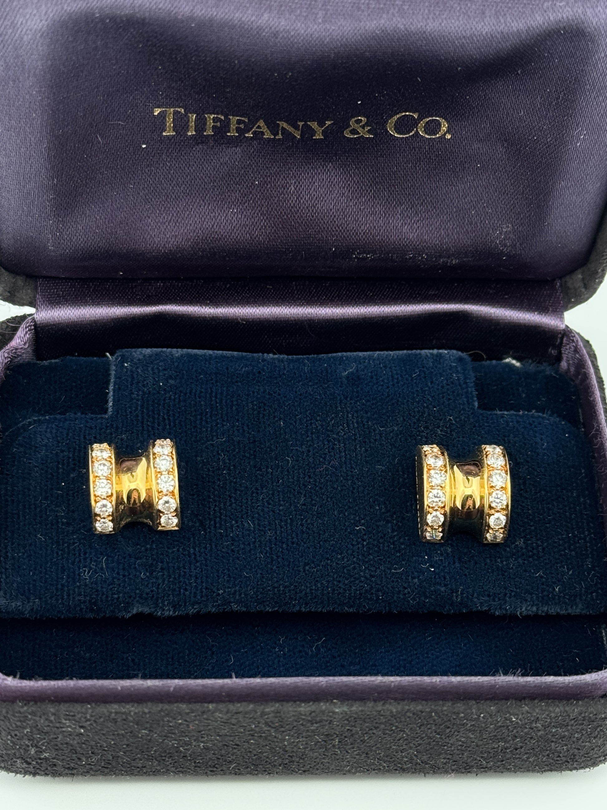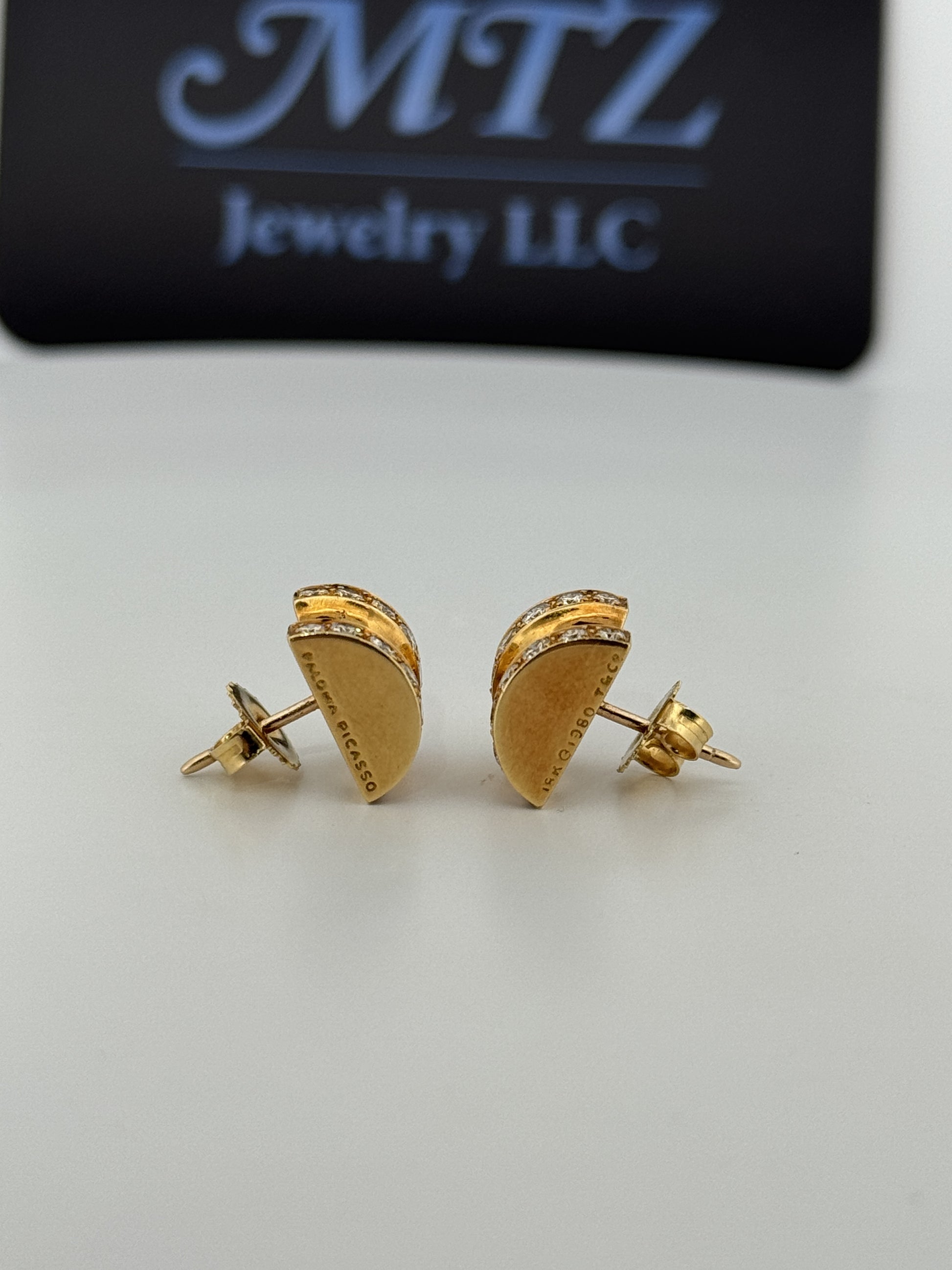 Gorgeous set of Tiffany & Co Paloma Picasso 18kt Yellow Gold Diamond earrings. With 1.12 carats estimated of natural High quality diamonds create a stunning look. Stamped 1980 the piece is close to being 50 years old and is in excellent condition.